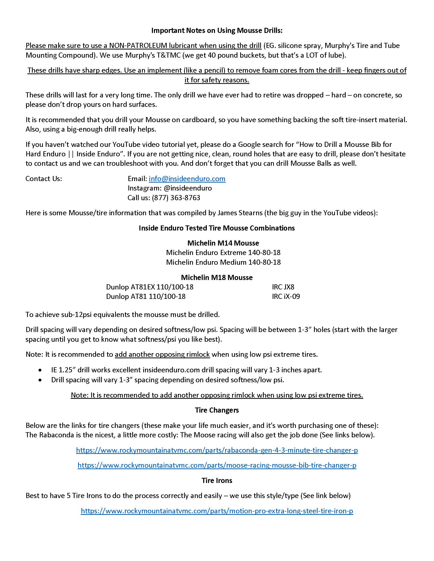 Pro Factory mousse core drill. The professional's tool to easily customize mousse softness for extreme traction.